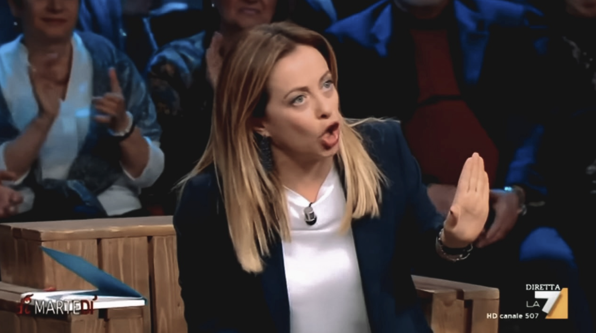 📢 Meloni (alzando la voce, perdendo la calma):